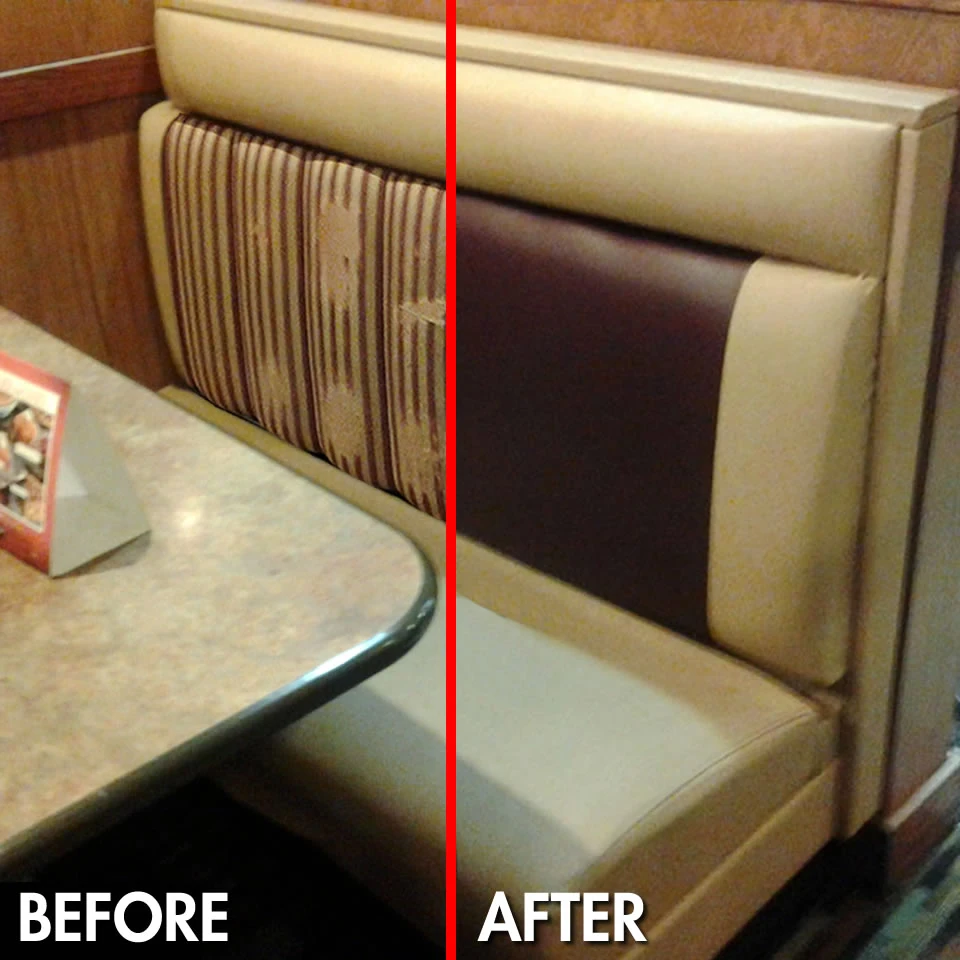 We can patch or replace the vinyl or leather. We also offer full booth resurfacing, booth reupholstery, and booth rebuilds.